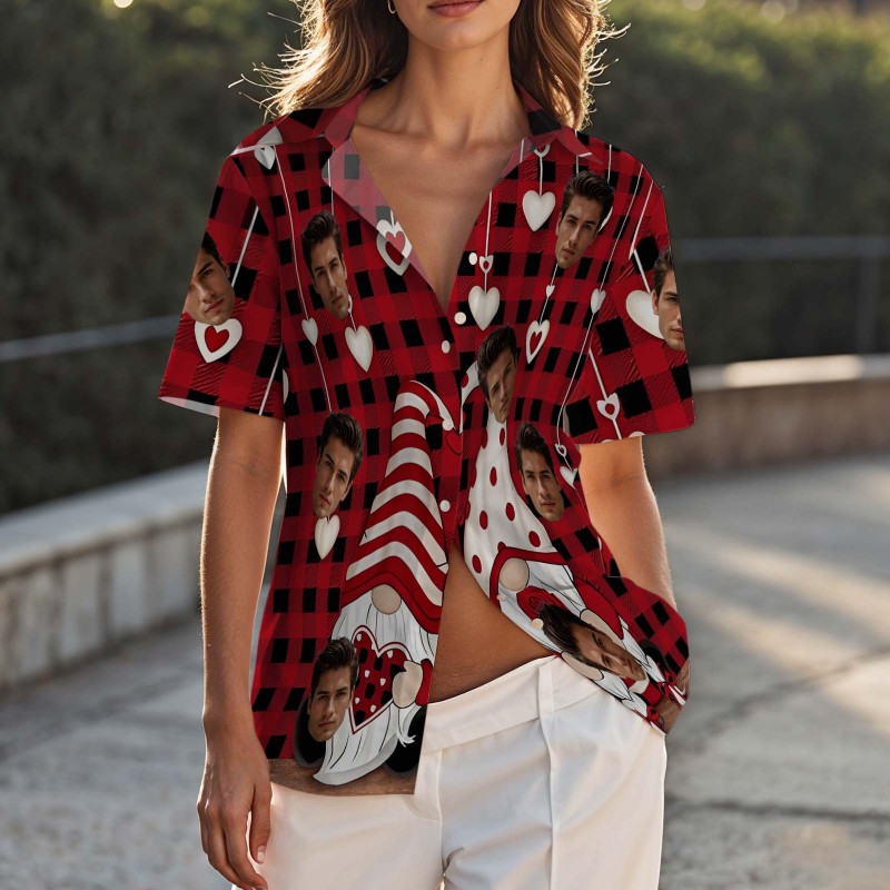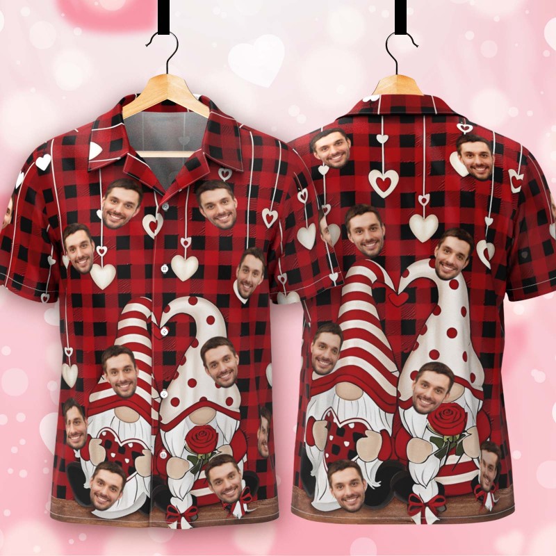 Couple Hawaiian Shirt Red Valentine Gnomes Button-down Shirt Gift For Couple