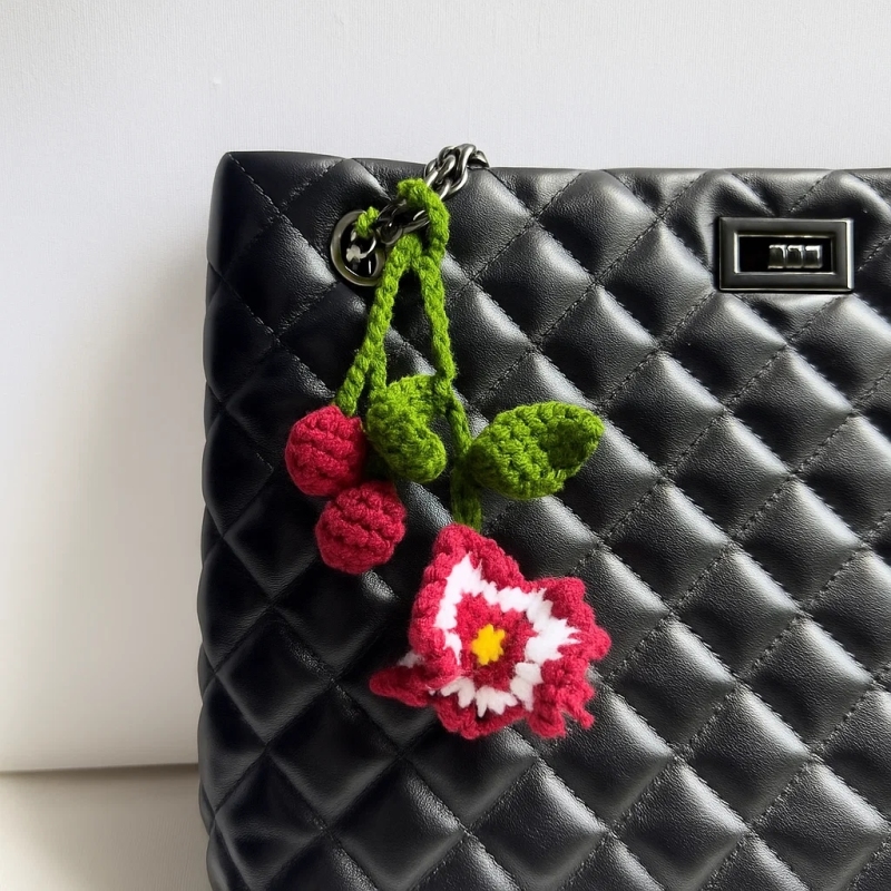 🍒 Handmade with Love: Each cherry charm is carefully crafted with soft, high-quality cotton yarn, making every piece one-of-a-kind and full of artisan charm.