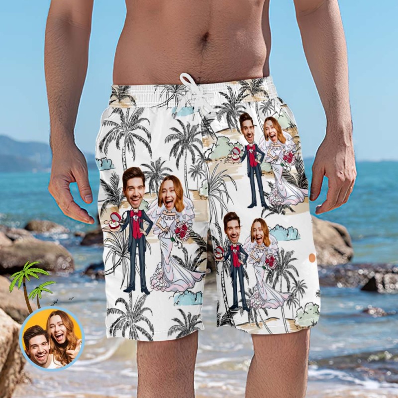 Custom Beach Shorts Artistic Wedding Photo Swim Trunks Best Wedding Gift