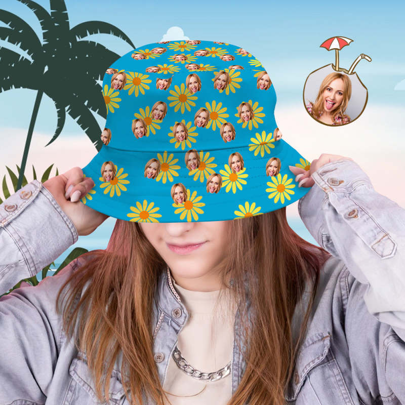 Home / Custom Bucket Hat Personalized Face All Over Print Tropical Flower Print Hawaiian Fisherman Hat - Yellow Flowers