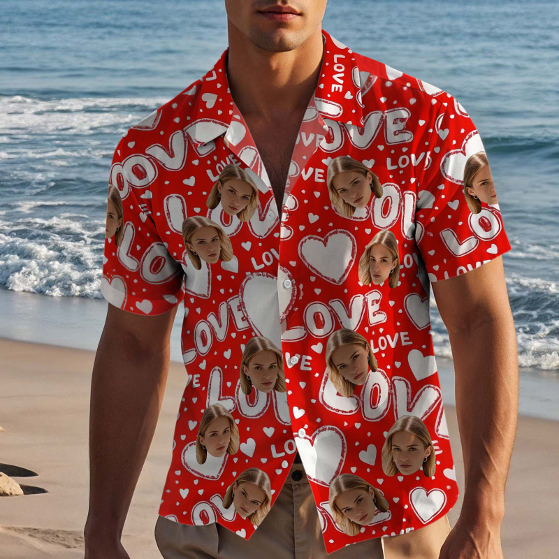 Put your photo on a custom photo Hawaiian shirt couples outfit.