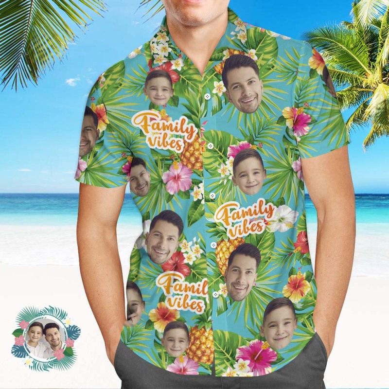 Custom Face All Over Print Hawaiian Shirt Family Vibes Photo Shirt