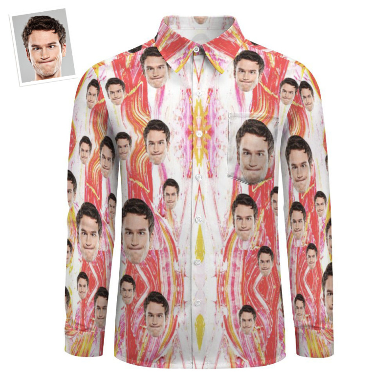 Custom Face All Over Print Large Long Sleeve Shirt Abstract Paint Brush Texture