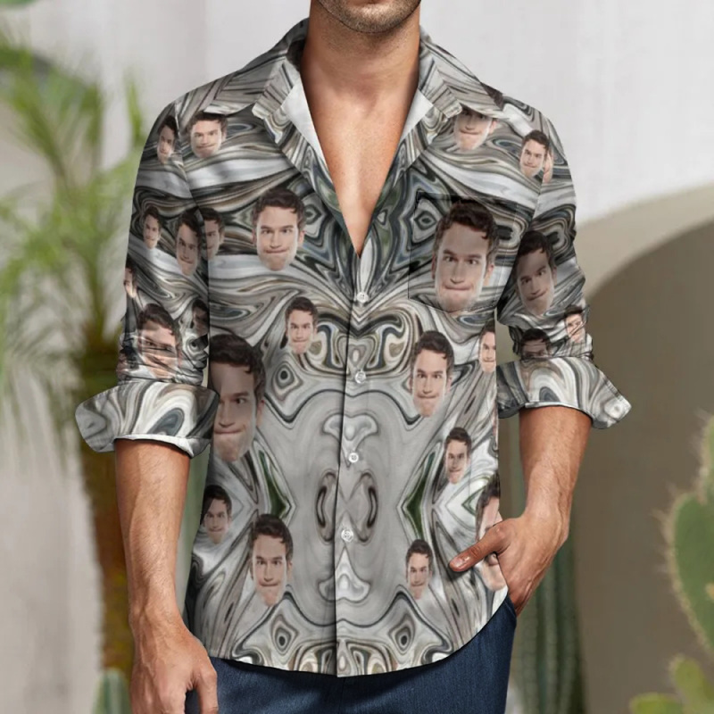 Home / Custom Face All Over Print Large Long Sleeve Shirt Marble Ink Watercolor Texture