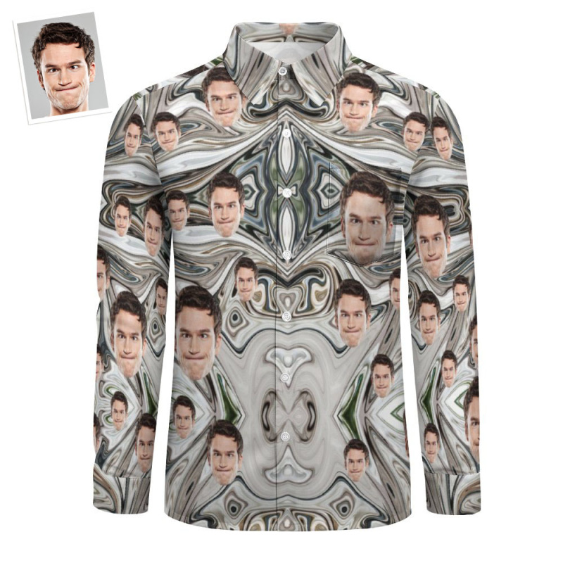 Custom Face All Over Print Large Long Sleeve Shirt Marble Ink Watercolor Texture