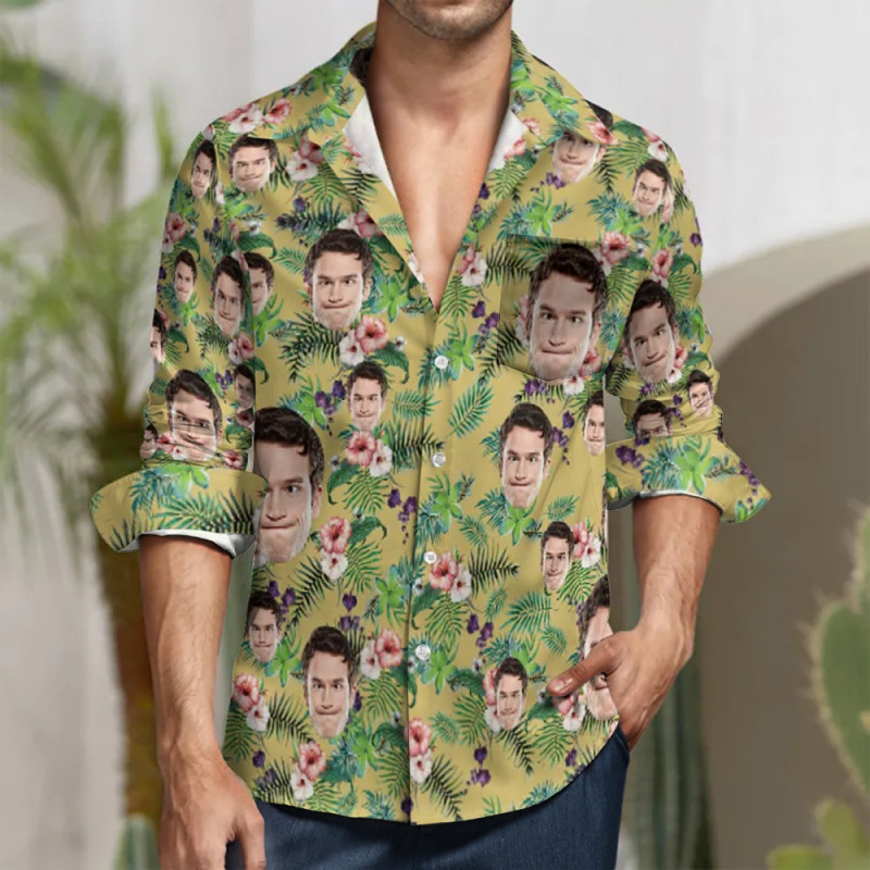 Custom Face All Over Print Long Sleeve Shirt Pink Flowers