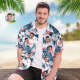 Home / Custom Face All Over Print Men's Hawaiian Shirt Flamingo and Flowers Blue Leaves