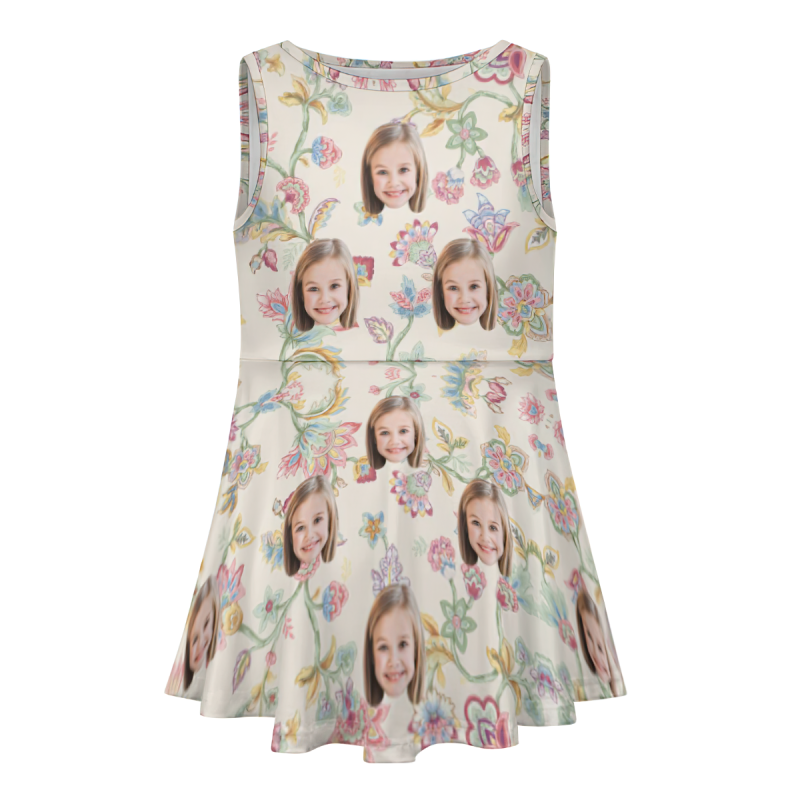 Custom Face Dress Personalised Summer Hawaiian Girls'Dresses Pink Flowers