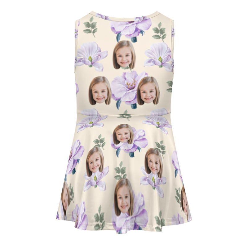 Custom Face Dress Personalised Summer Hawaiian Girls'Dresses Purple Flowers