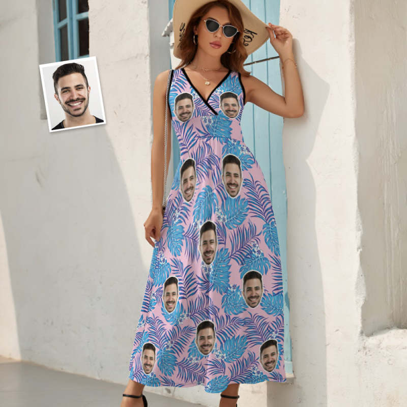Custom Face Dress Summer Chic Exquisite Hawaiian Leafy Patterns Gift for Her