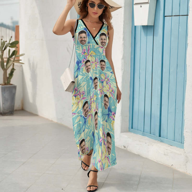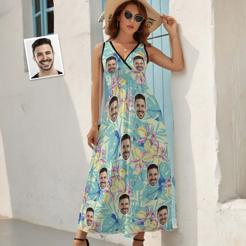 Custom Face Dress Vibrant Hawaiian Blossoms Gift for Her