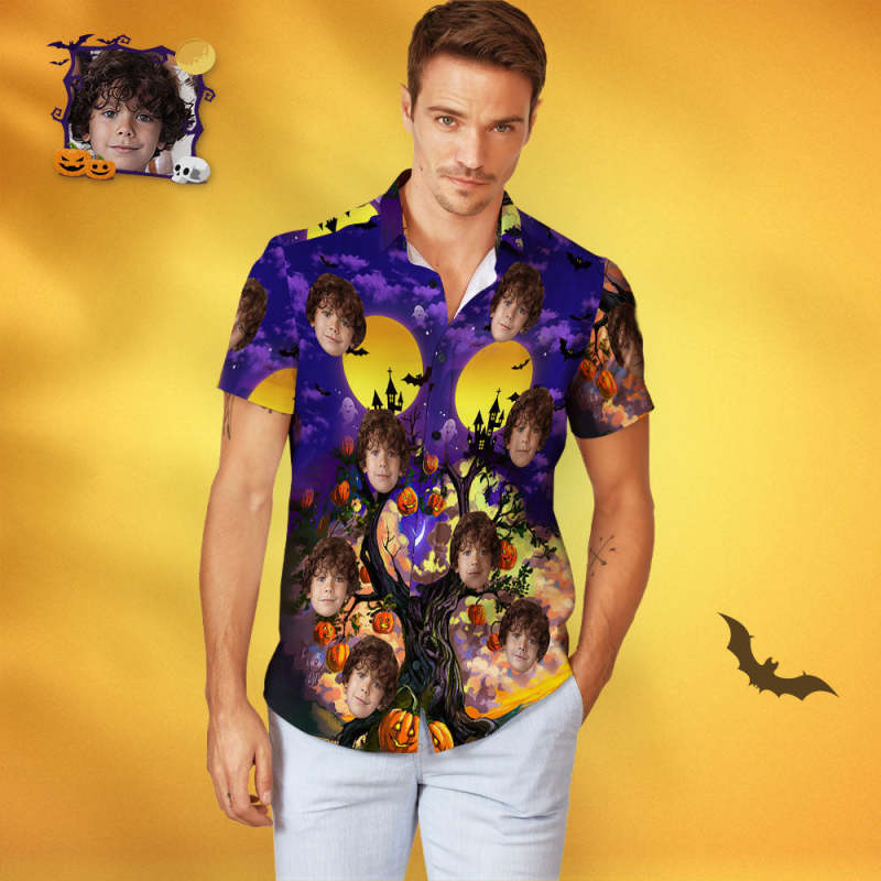 Put Your Photo On Custom Halloween Hawaiian Shirt Parent-child Wears.