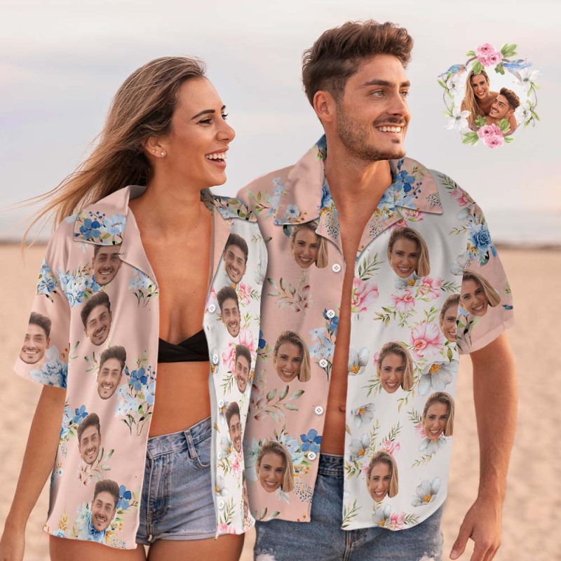 Custom Face Hawaiian Shirt Shirt Couple Outfit Patchwork Printing Shirt Valentine's Day Gifts