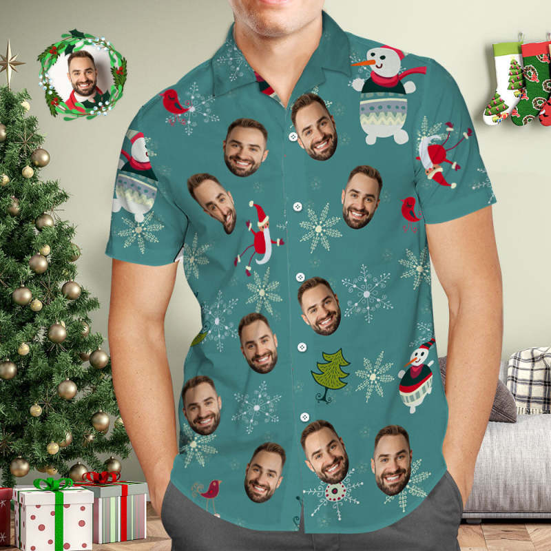 Home / Custom Face Hawaiian Shirt Snowflakes and Snowmen Green Hawaiian Shirts Christmas Gift for Him