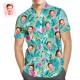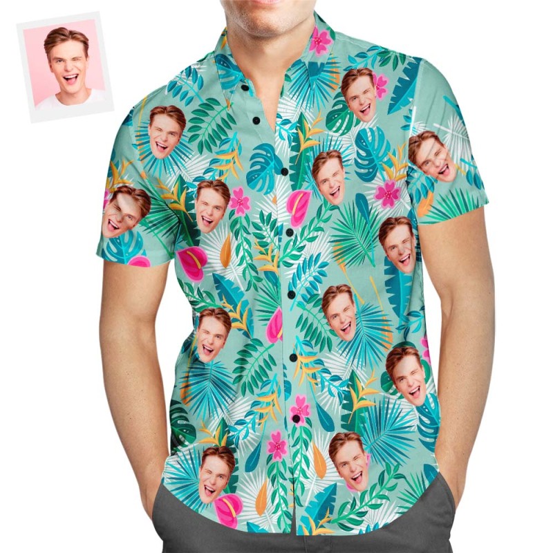 Custom Face Hawaiian Shirt Teal Leaves Beach Shirt Creative Gift for Men