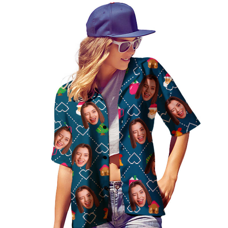 Home / Custom Face Hawaiian Shirts Personalized Christmas Gift Women's Santa Claus Party Christmas Shirts