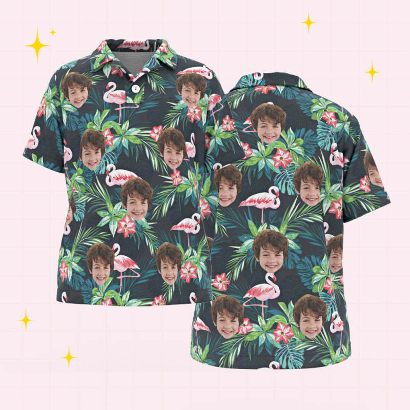 Home / Custom Face Kids Polo Shirts Personalised Photo Hawaiian Style Shirt Flamingo Flower