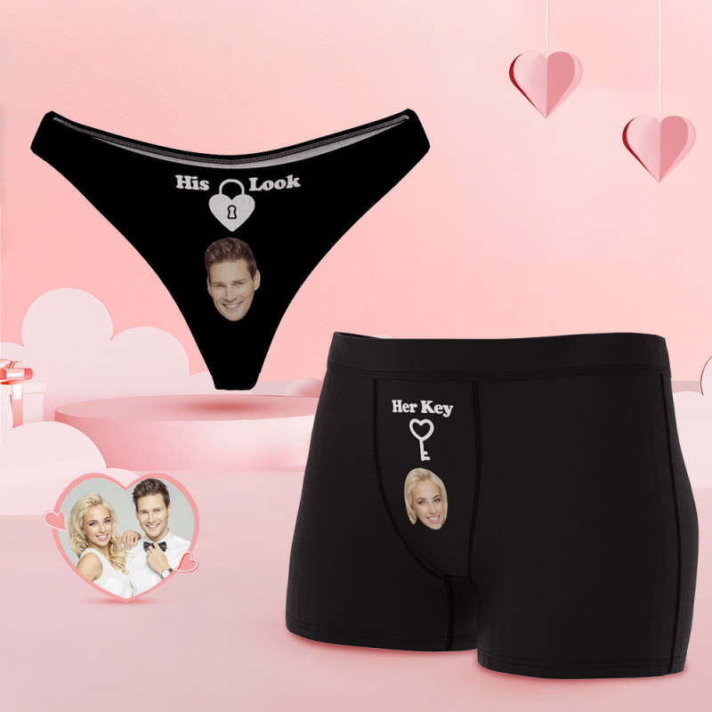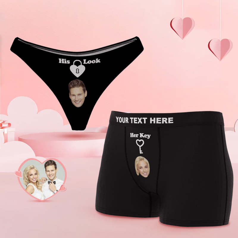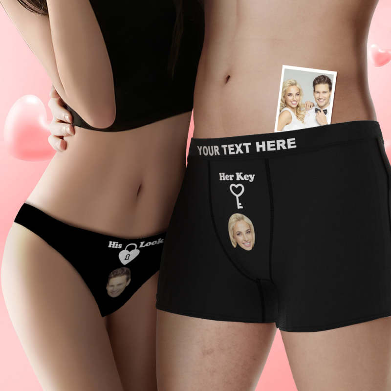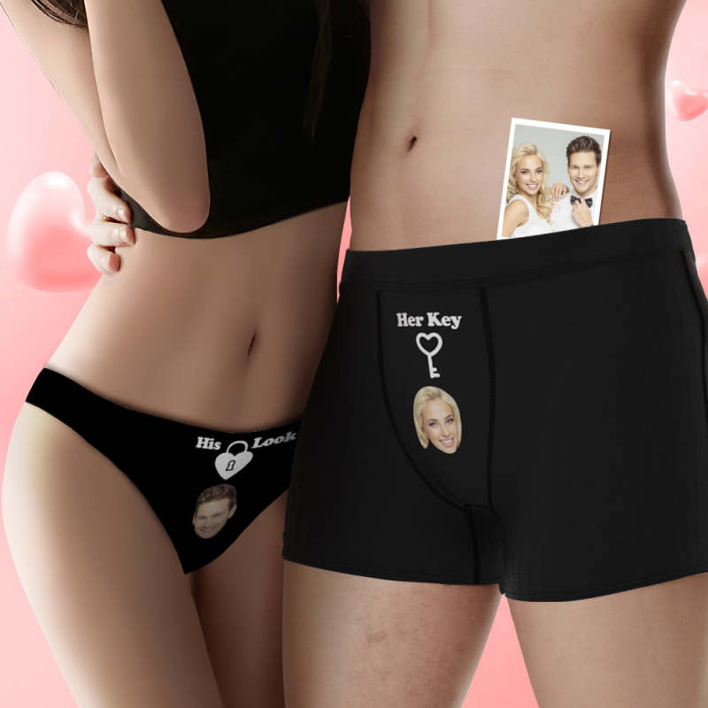 Custom Face Lock and Key Couple Underwear Personalized Underwear Valentine's Day Gift