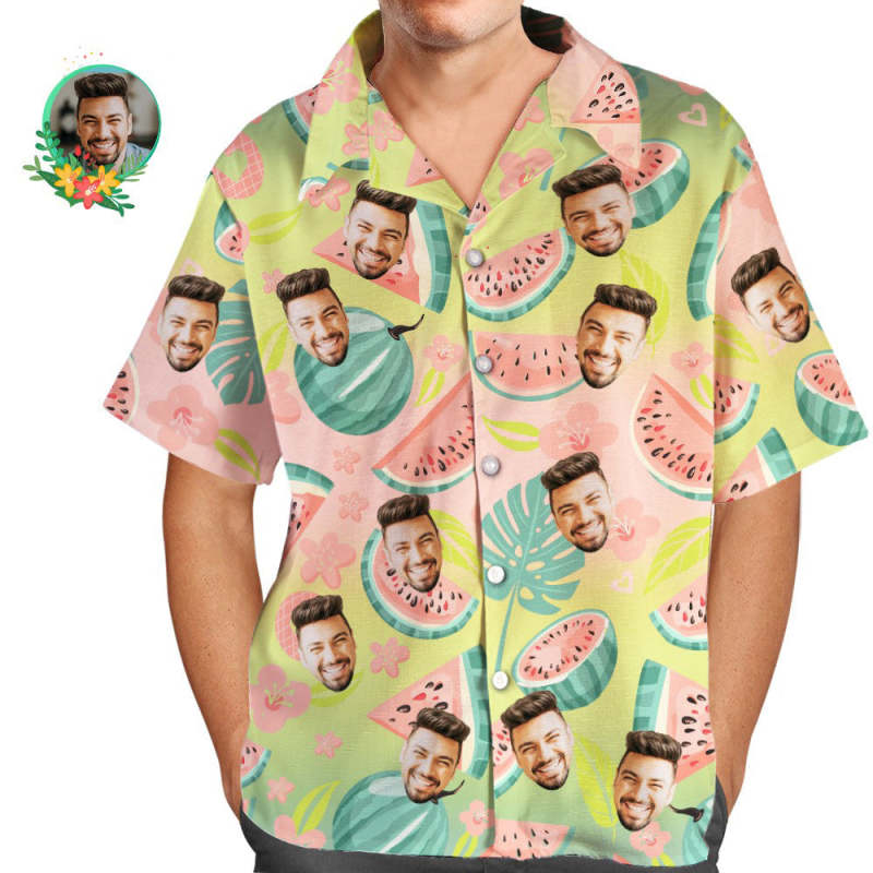 Home / Custom Face Men's All Over Print Aloha Hawaiian Shirt Watermelons and Summer