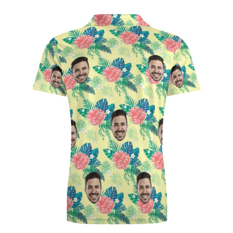 Home / Custom Face Polo Shirt For Men Personalized Yellow Hawaiian Golf Shirts