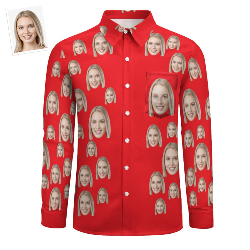 Home / Custom Face Red All Over Print Large Long Sleeve Shirt