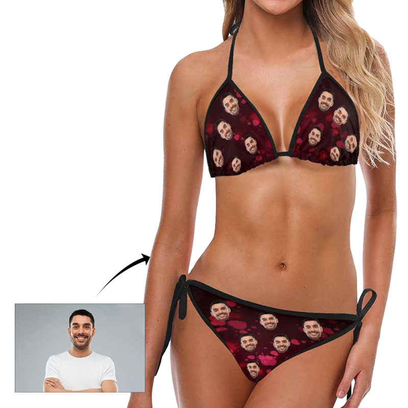 Custom Face Bikini Women's Sexy Photo Segmented Swimsuit - Heart