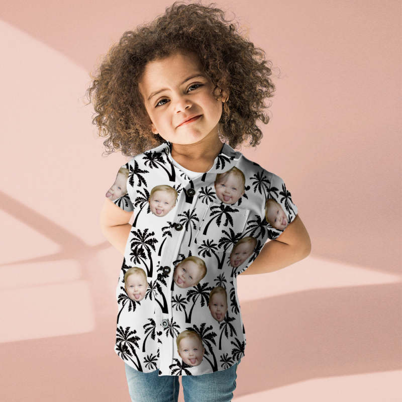 Custom Face Shirt Kid's Coconut Trees Design Personalized Hawaiian Shirt