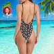 - Deep V neckline, low back and high leg.