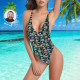 Home / Custom Face V-Neck Bikini Women's Photo One Piece Swimsuit Women's Gifts - Leaves & Flamingo