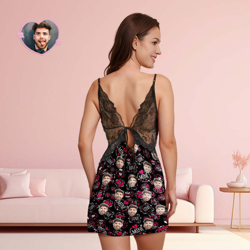 Home / Custom Face Women Lace Sleepwear BE MINE Personalized Photo Nightwear Valentine's Day Gift