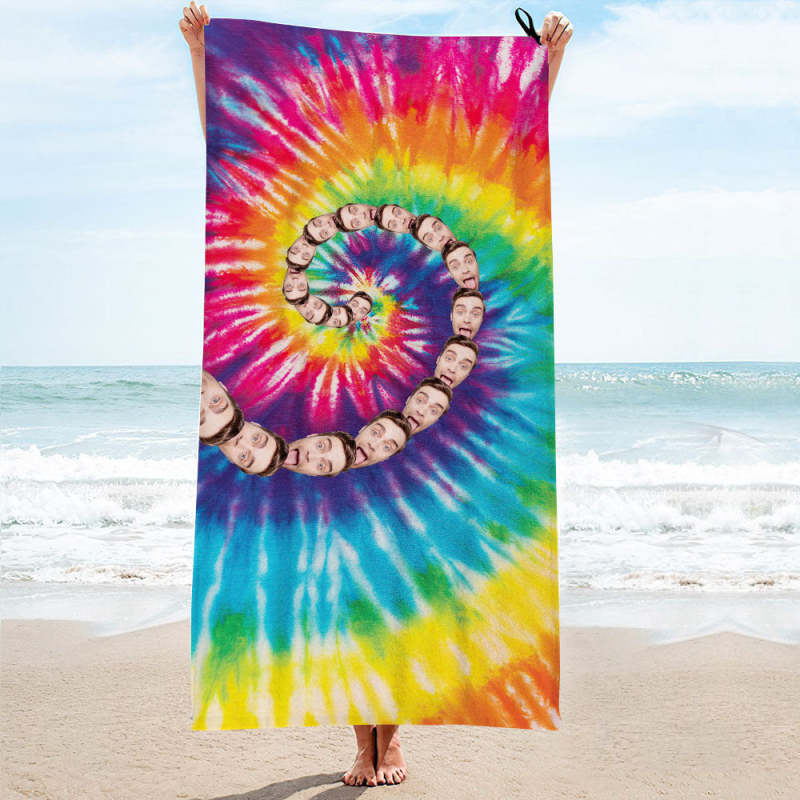Home / Custom Faces Rainbow Beach Towel Personalized Photo Beach Towel Funny Gift