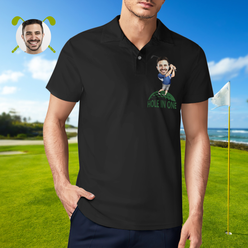 Home / Custom Funny Hole In One Custom Photo Golf Shirts Personalized Face Polo Shirt in Your Choice of Skin Tone