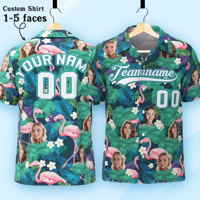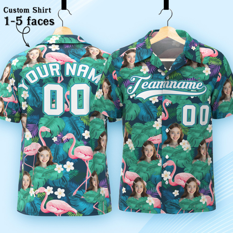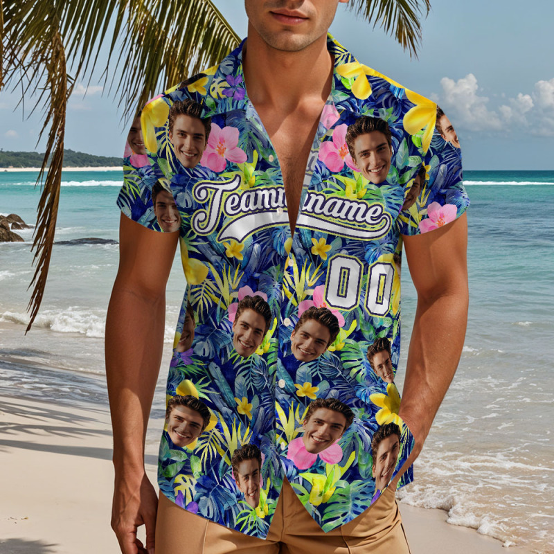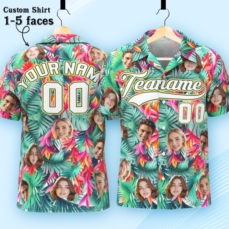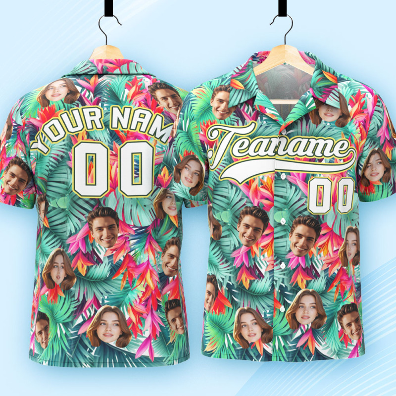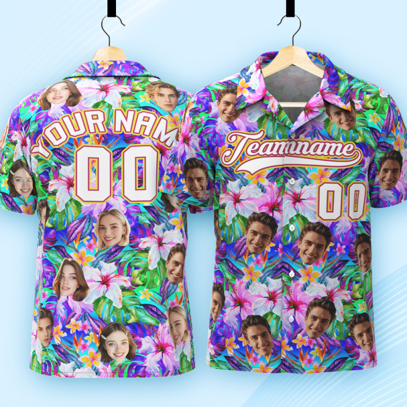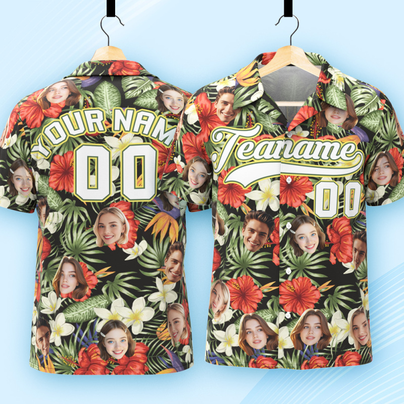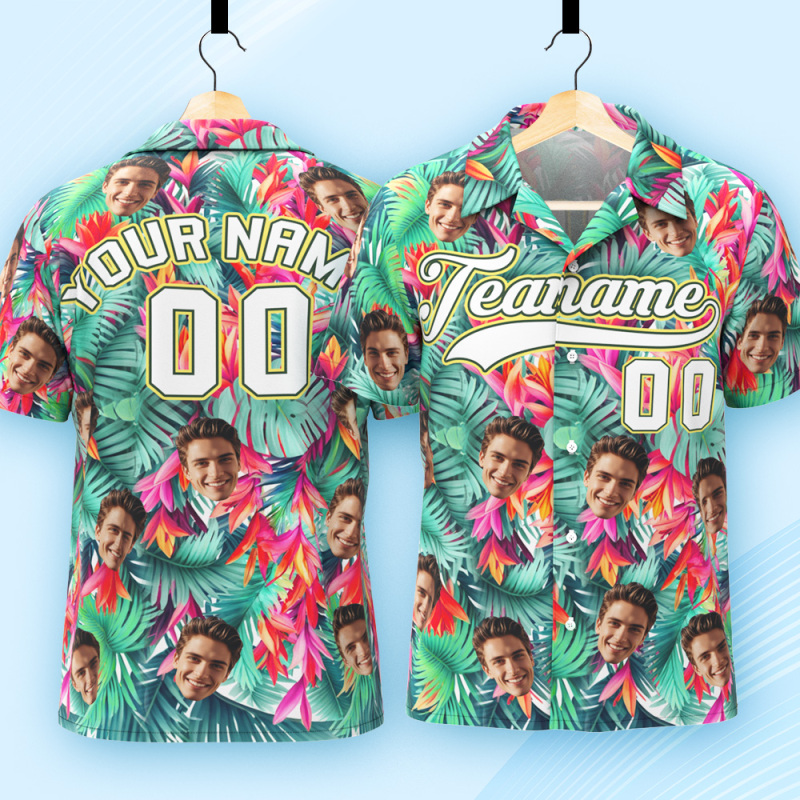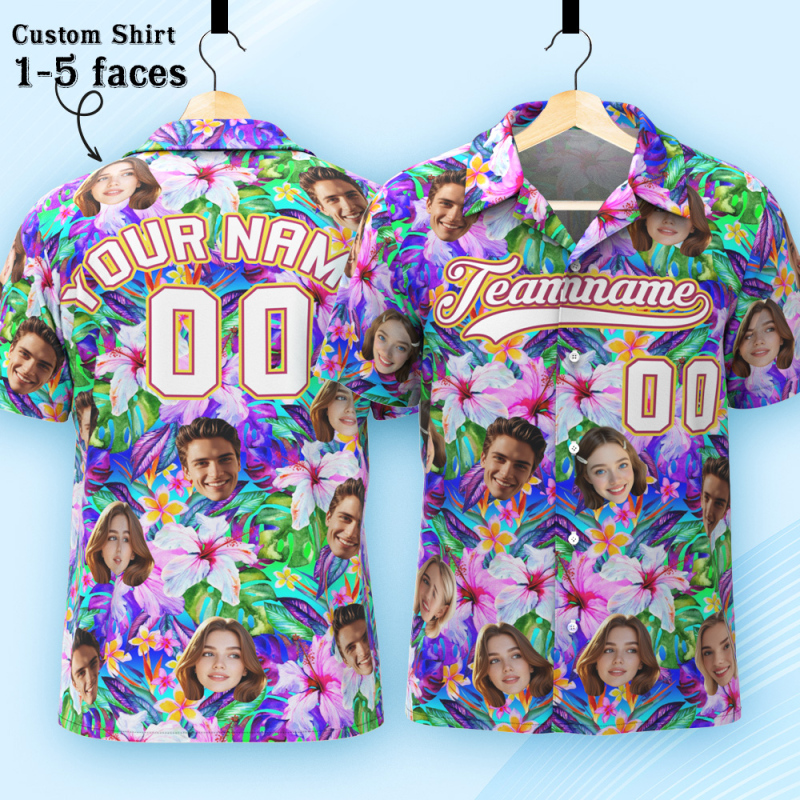Custom Hawaiian Shirt with Face Teamname Name Number Personalized Hawaii Floral Shirt for Men Women