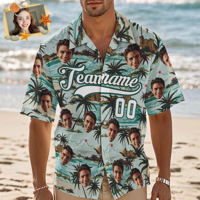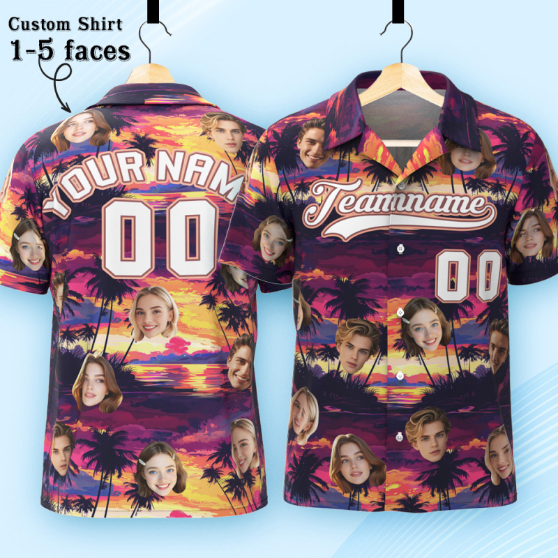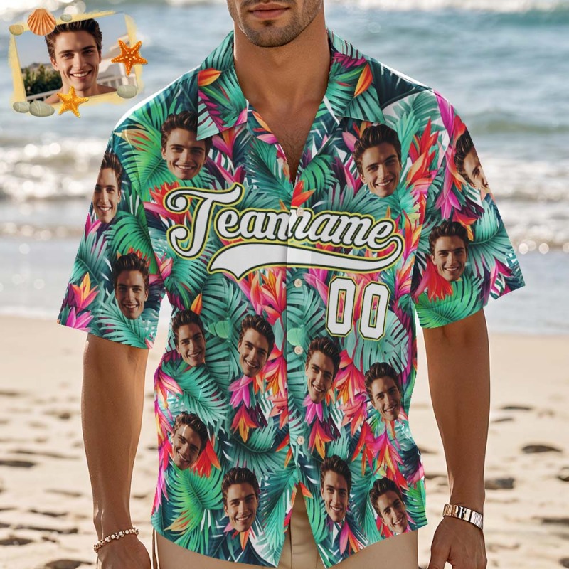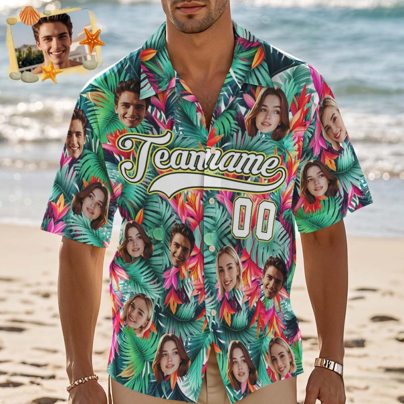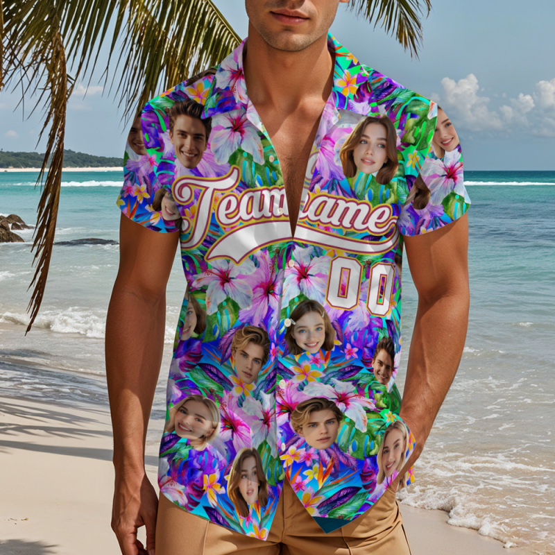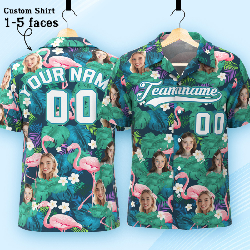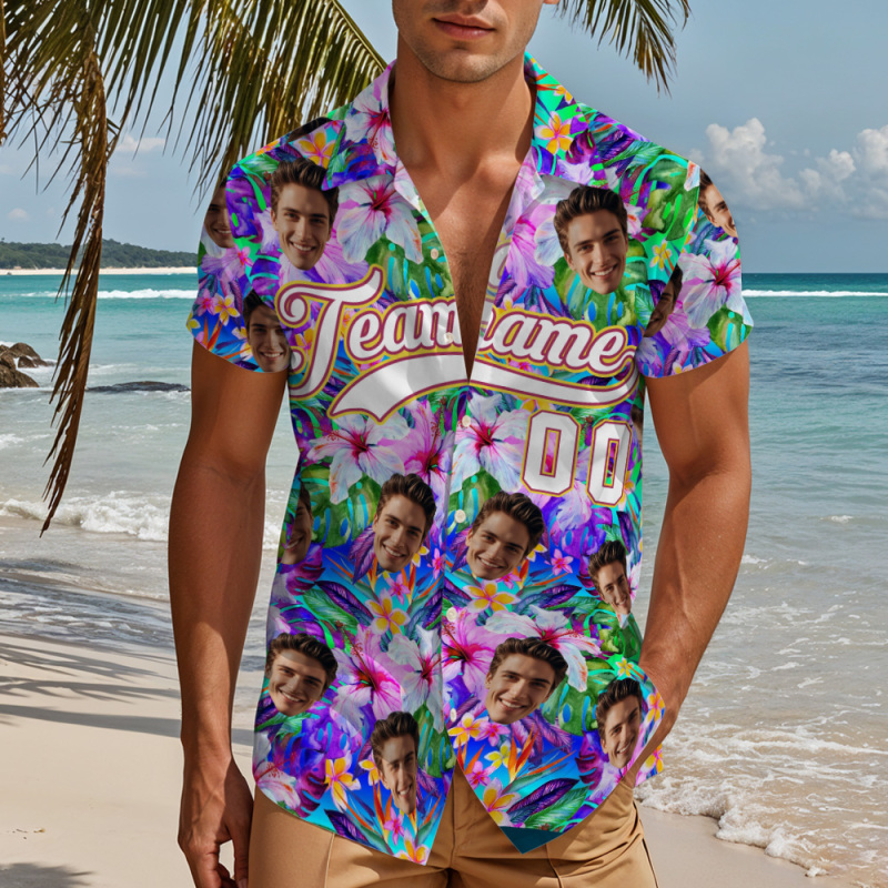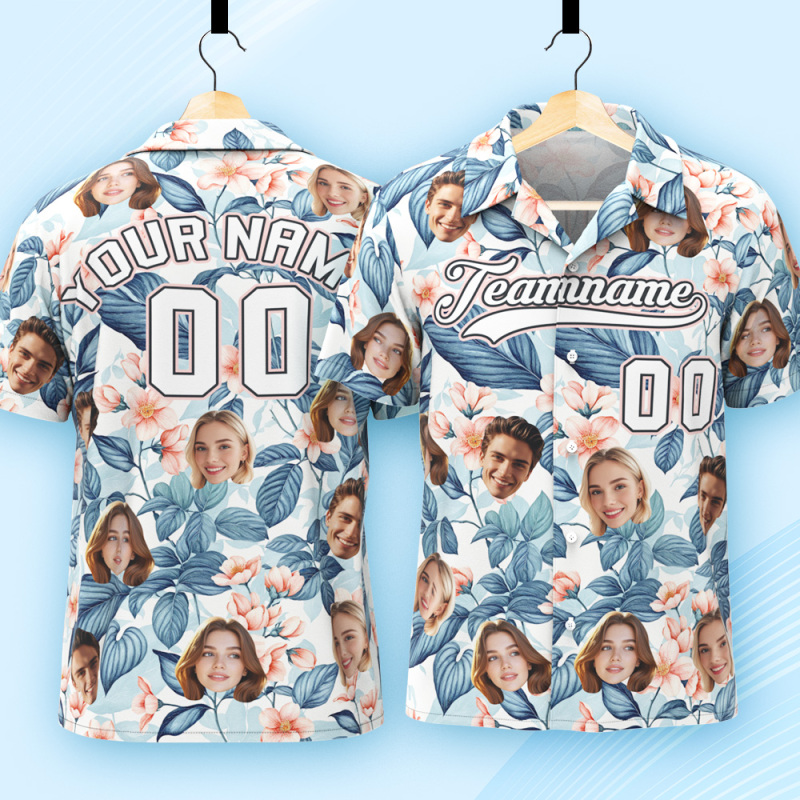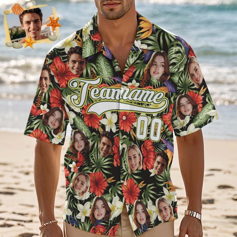 Custom Hawaiian Shirt with Face Teamname Name Number Personalized Hawaii Floral Shirt for Men Women