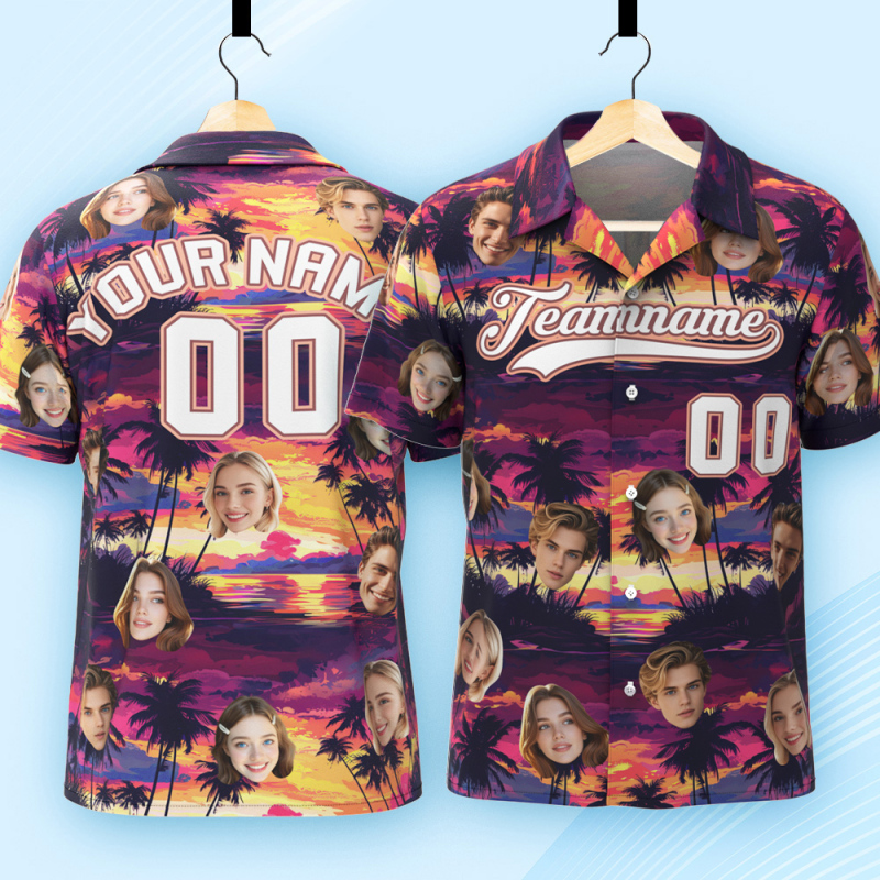 Print your face on a real Men's All Over Print Hawaiian Baseball Jersey Shirt. Cheer you up or show your love and support for your loved one with your awesome idea. The best custom gifts for your lover, family and friends, and for various holidays.