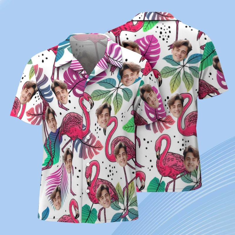 Custom Hawaiian Shirts With Face Colorful Flamingo Aloha Beach Shirt - White