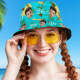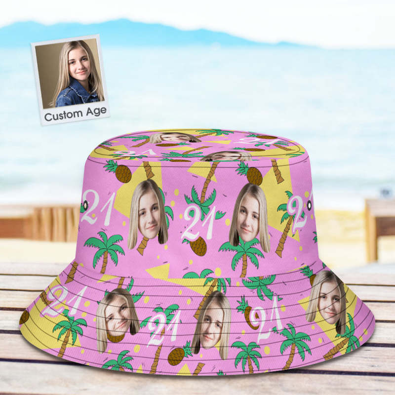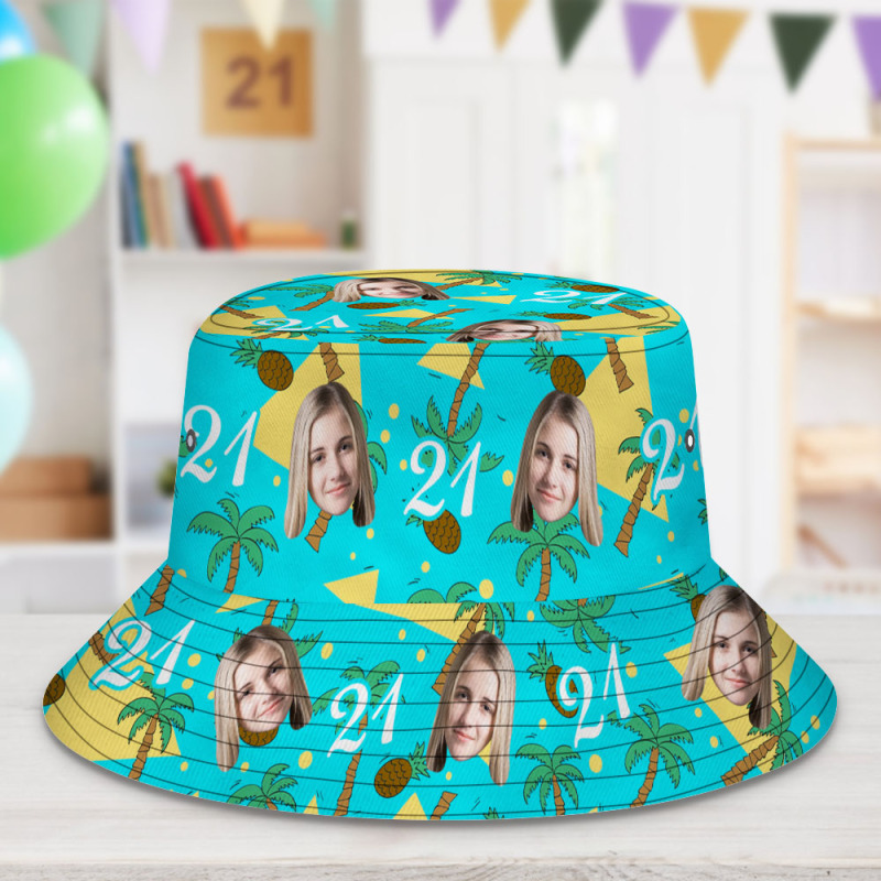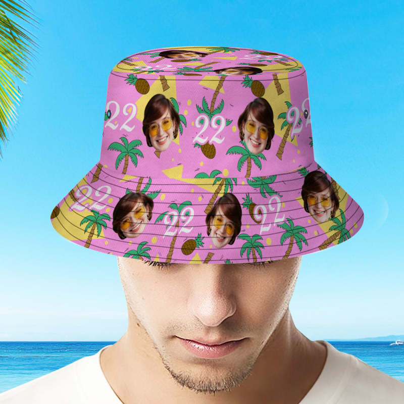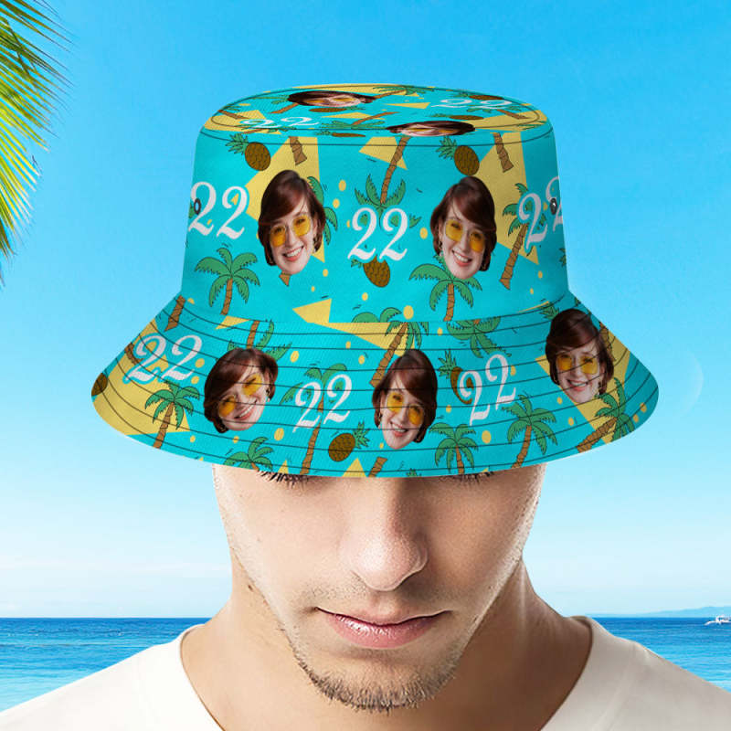 Custom Multi-color Face and Numbers BucketHat Coconut Tree and Pineapple Gift for Men
