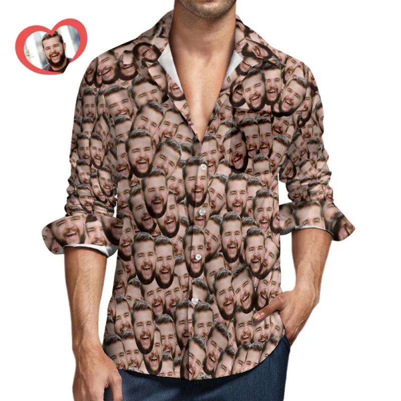 Custom Muti-face Design All Over Print Long Sleeve Shirt