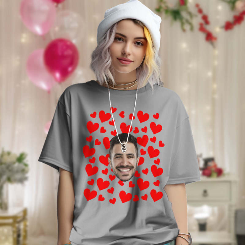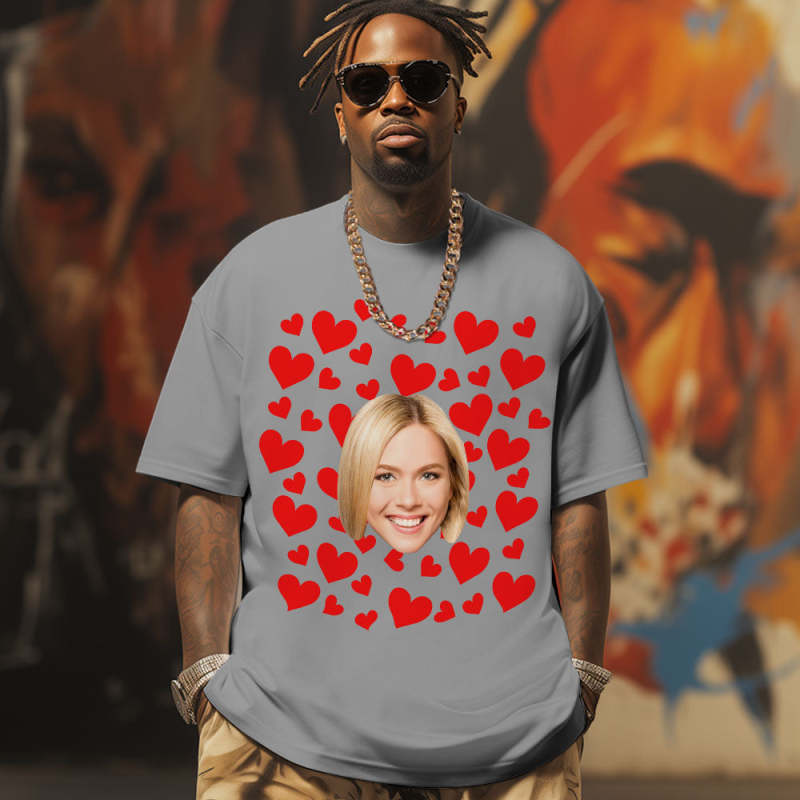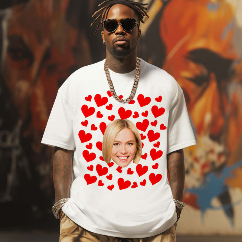 Custom Photo Vintage Tee Personalized Couple T-shirt Red Hearts Valentine's Day Gifts for Men