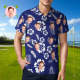 Men's Custom Face Polo Shirt Blue Tropical Vibe Personalized Hawaiian Golf Shirts Gift for Him