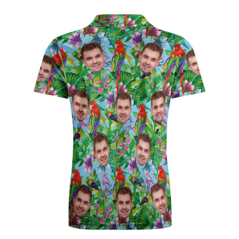 Men's Custom Face POLO Shirt Personalised Golf Shirts For Him Colorful Parrot