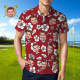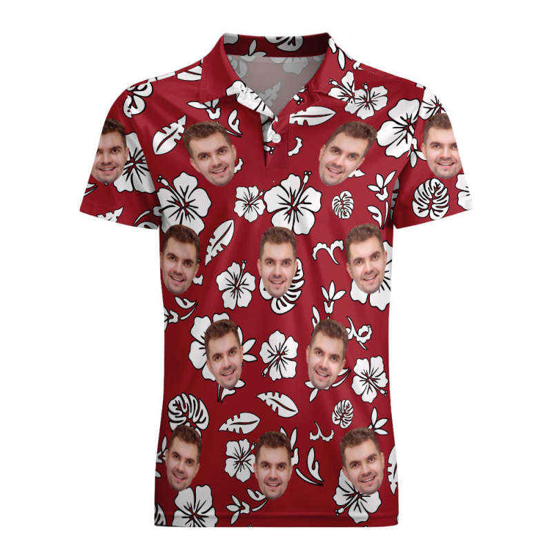 Men's Custom Face POLO Shirt Personalised Red Golf Shirts For Him White Leaves