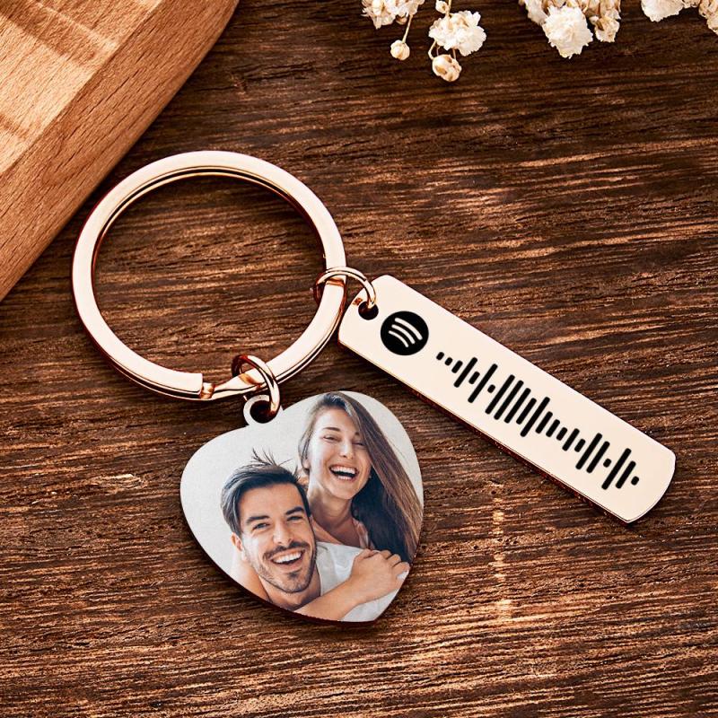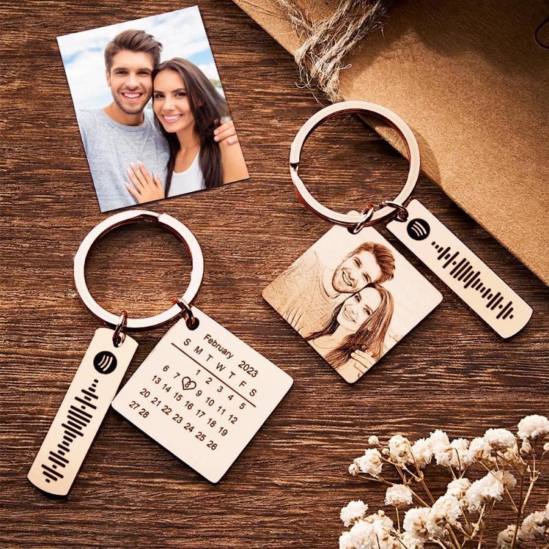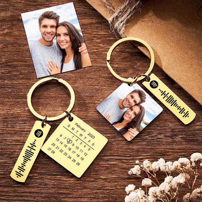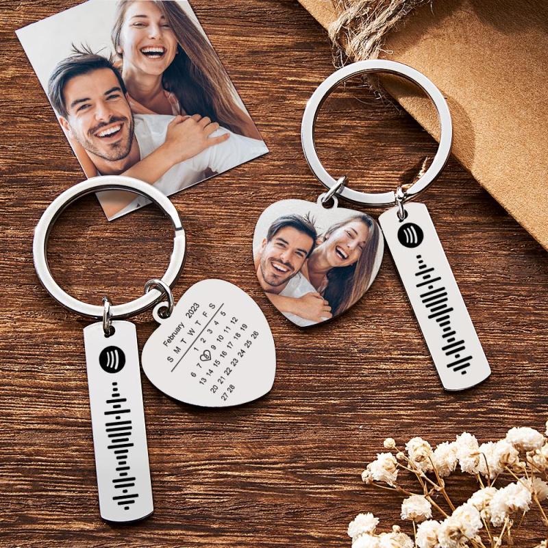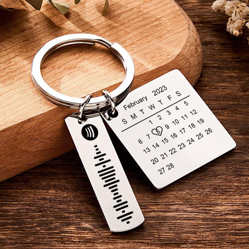 Our Personalized Calendar Keychain is a unique and sentimental gift perfect for commemorating special occasions. Crafted with high-quality stainless steel, this heart-shaped keychain showcases a significant photo and customized text. The square shape music code adds a touch of personalization. Available in silver, gold, rose gold, black, and colored variations, this keychain is an ideal anniversary gift. Order now and give your loved one a cherished keepsake.
