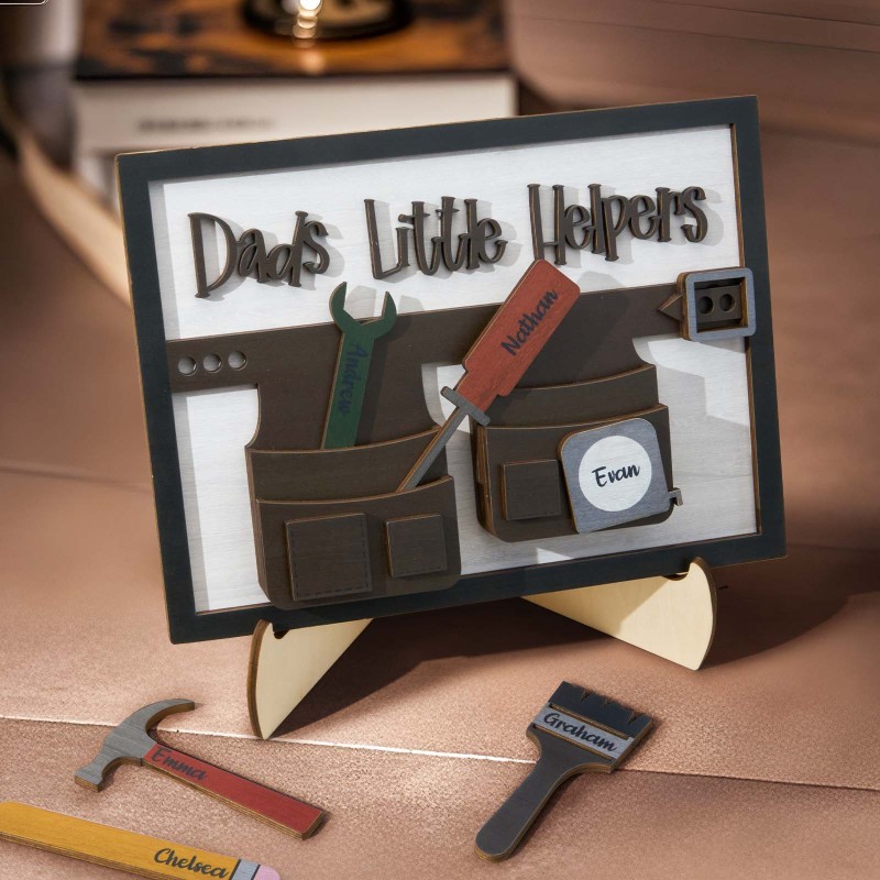 Celebrate the world’s best handyman with this charming “Dad’s Little Helpers” Personalized Wood Tool Stand! 🧰 This heartwarming decor piece features layered 3D wooden tools and customizable name tags for each child, making it the perfect gift for Father’s Day, birthdays, or just because.