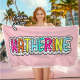 This personalized Dalmatian dots beach towel is the perfect summer vacation accessory. It features a vibrant rainbow name that adds a unique touch.