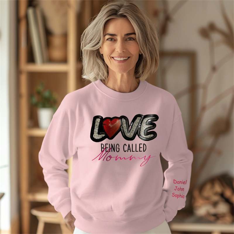 Surprise mom with a unique gift this Mother's Day. Our personalized sweatshirt features custom names on the sleeve and chest, making it a one-of-a-kind item just for her. Show her how much you care with this thoughtful and heartfelt gesture.