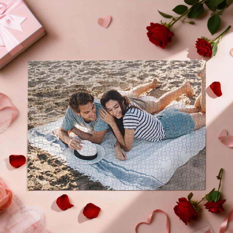 Turn your favorite photo into a meaningful keepsake with this personalized photo jigsaw puzzle, designed especially for couples and loved ones. Each puzzle features a unique LOVE-shaped special piece, adding a sweet surprise as the final touch to your creation.