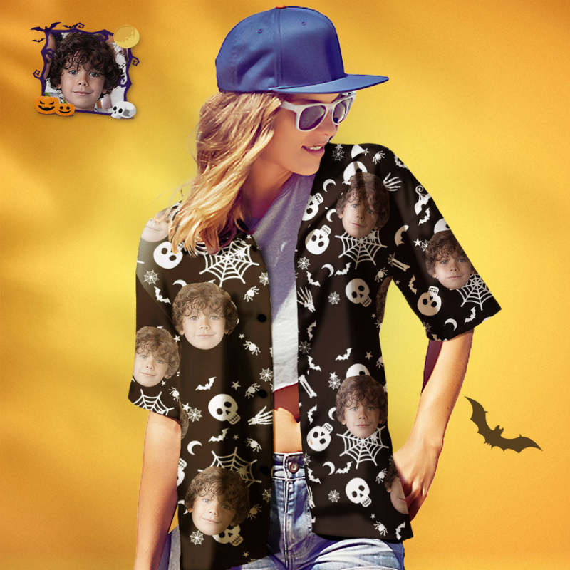 Women's Custom Face Funny Halloween Print Personalized Halloween Hawaiian Shirt