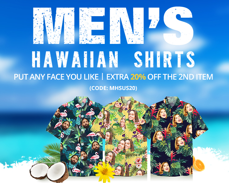 Custom Printed Hawaiian Shirt for Fans Personalized Face and Text Hawaiian Shirt Gift for fans - Flowers and Leaves Design