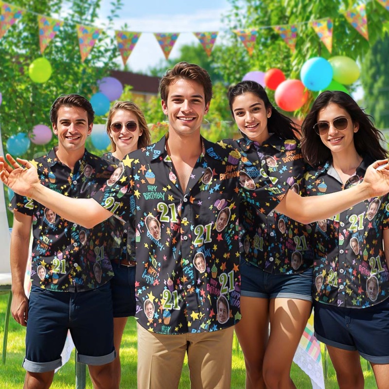 Home / Custom Birthday Face Shirts With Cakes Custom Face & Age Button-down Shirts